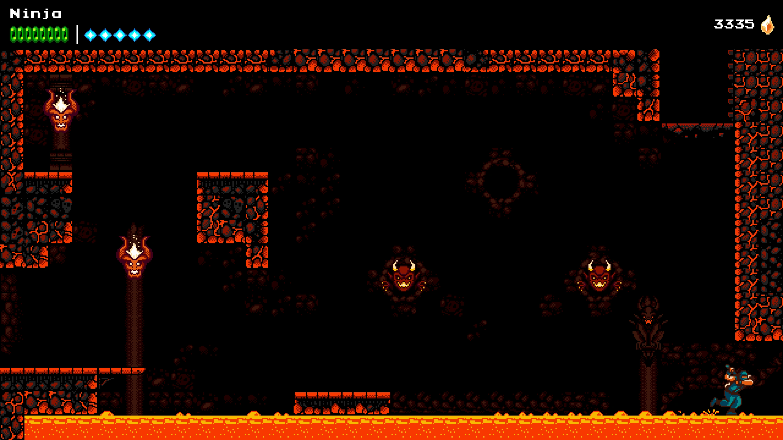 The Key of Chaos is an orange Music Note found in the Underworld. Ninja must enter the Underworld from Searing Crags, using the Lightfoot Tabi found from the Sunken Shrine. Past the Underworld's first non-shop checkpoint is a room with three Demon Hives, where the floor is mostly filled with lava. The lower-right corner of the room can only be entered using the Lightfoot Tabi, which leads onto the pathway towards the Music Note.